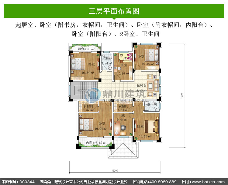 | 三 層: | 起居室、臥室(附書房,衣帽間,衛生間)、臥室(附衣帽間,內陽臺)、臥室(附陽臺)、2臥室、衛生間 | |||
