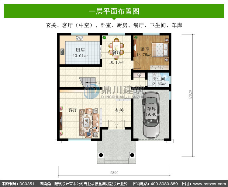 | 一 層: | 玄關、客廳(中空)、臥室、廚房、餐廳、衛生間、車庫 | |||