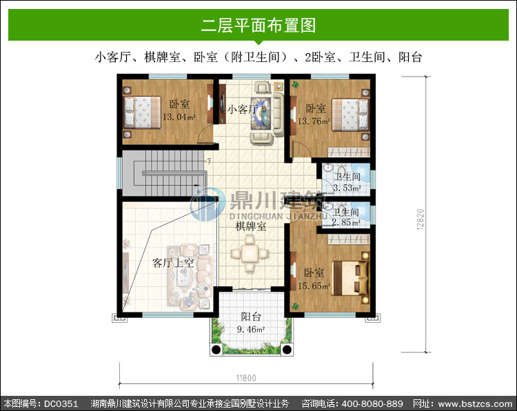 | 二 層: | 小客廳、棋牌室、臥室(附衛生間)、2臥室、衛生間、陽臺 | |||
