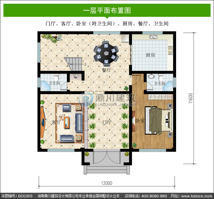 | 一 層: | 門廳、客廳、臥室(附衛(wèi)生間)、廚房、餐廳、衛(wèi)生間 | |||