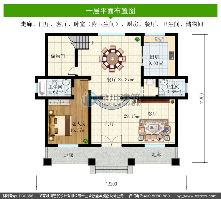 | 開間: 13.2米 | 進深: 11.3米 | 占地面積: 138平方米 | 建筑面積: 314.53平方米 |