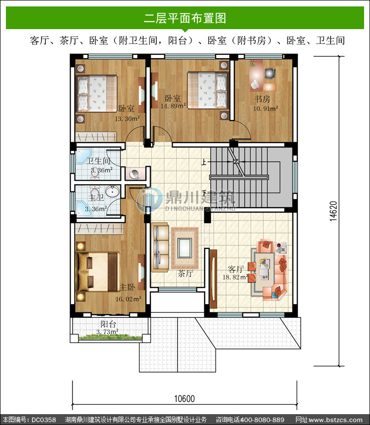 | 二 層: | 客廳、茶廳、臥室(附衛生間,陽臺)、臥室(附書房)、臥室、衛生間 | |||