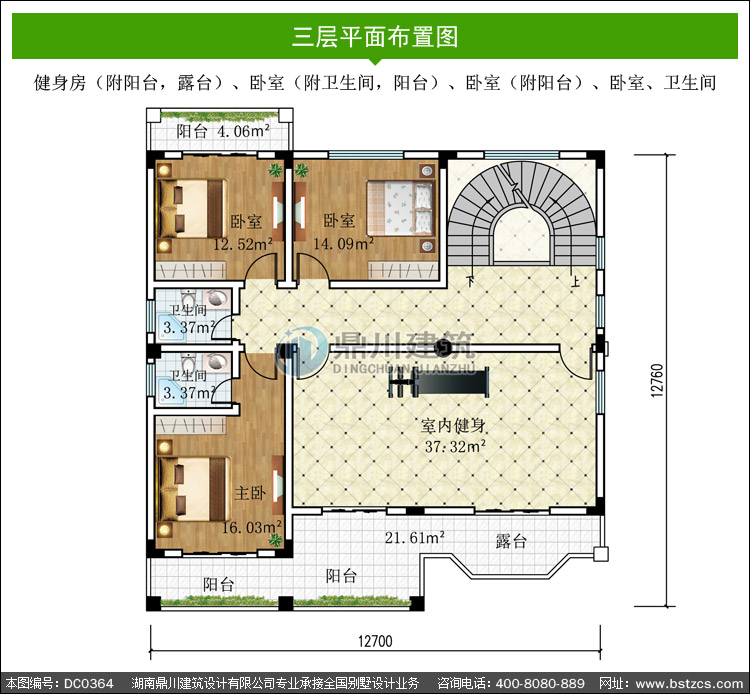 | 三 層: | 健身房(附陽臺,露臺)、臥室(附衛生間,陽臺)、臥室(附陽臺)、臥室、衛生間 | |||