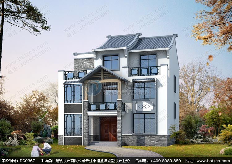 農村三層新中式別墅設計施工圖及效果圖_三層別墅設計圖紙,鼎川
