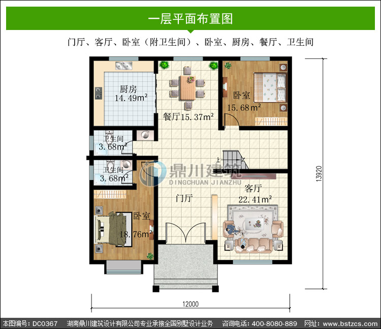 | 一 層: | 門廳、客廳、臥室(附衛生間)、臥室、廚房、餐廳、衛生間 | |||