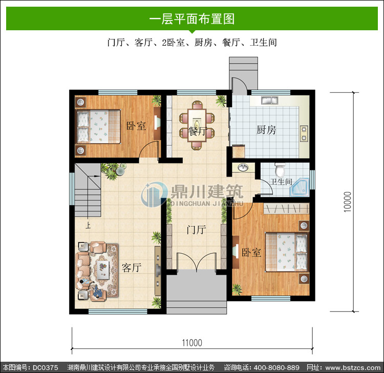 | 一 層: | 門廳、客廳、2臥室、廚房、餐廳、衛生間 | |||