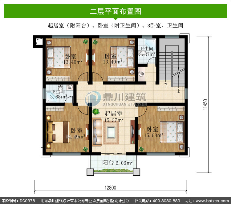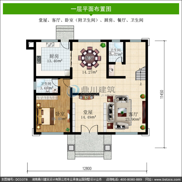 | 開間: 12.8米 | 進深: 11.45米 | 占地面積: 132.73平方米 | 建筑面積: 405.84平方米 |