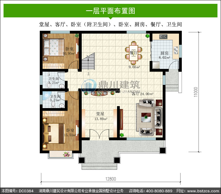 | 一 層: | 堂屋、客廳、臥室(附衛生間)、臥室、廚房、餐廳、衛生間 | |||