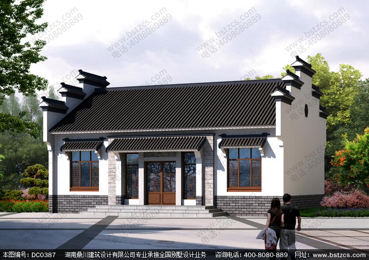農村一層中式自建房屋設計圖紙及效果圖_徽派房子設計圖紙,鼎川別墅設計