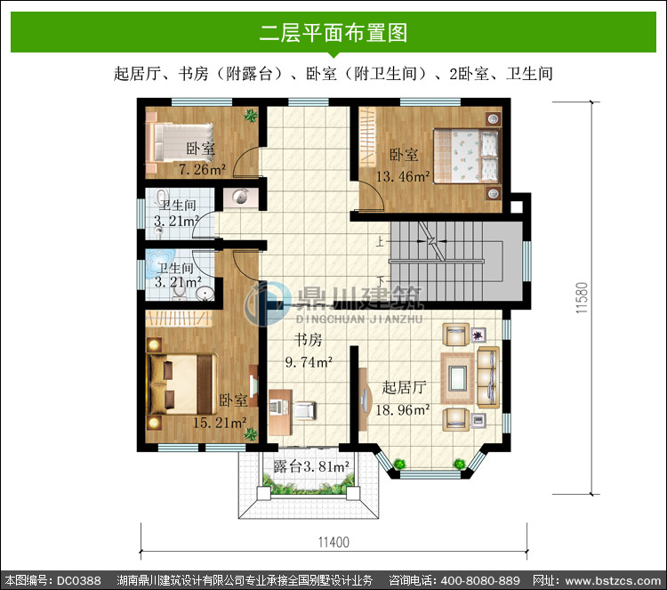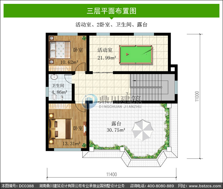 | 三 層: | 活動室、2臥室、衛生間、露臺 | |||