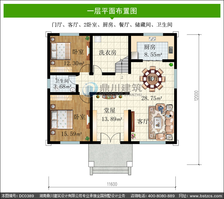 | 一 層: | 堂屋、客廳、2臥室、廚房、餐廳、洗衣房、衛生間 | |||