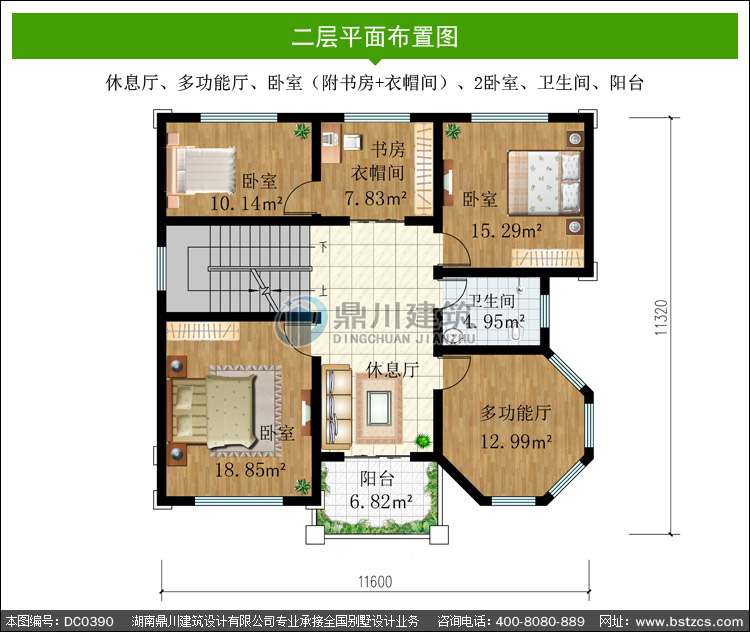 | 二 層: | 休息廳、多功能廳、臥室(附書(shū)房+衣帽間)、2臥室、衛(wèi)生間、陽(yáng)臺(tái) | |||