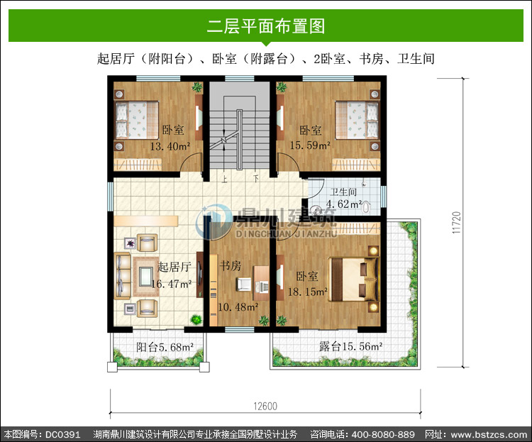 | 二 層: | 起居廳(附陽臺)、臥室(附露臺)、2臥室、書房、衛(wèi)生間 | |||