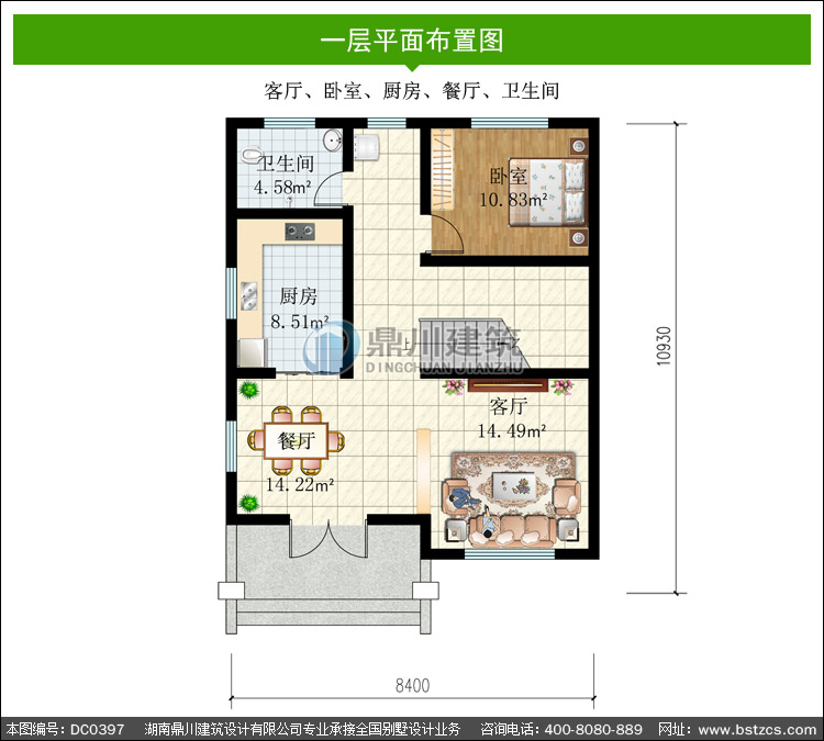 | 一 層: | 客廳、臥室、廚房、餐廳、衛生間 | |||