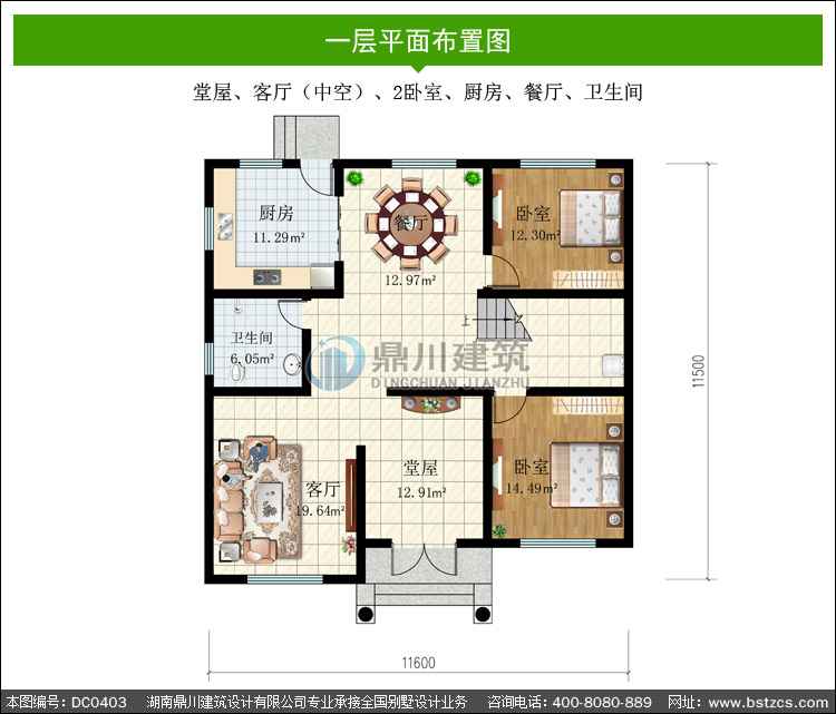 | 一 層: | 堂屋、客廳(中空)、2臥室、廚房、餐廳、衛(wèi)生間 | |||