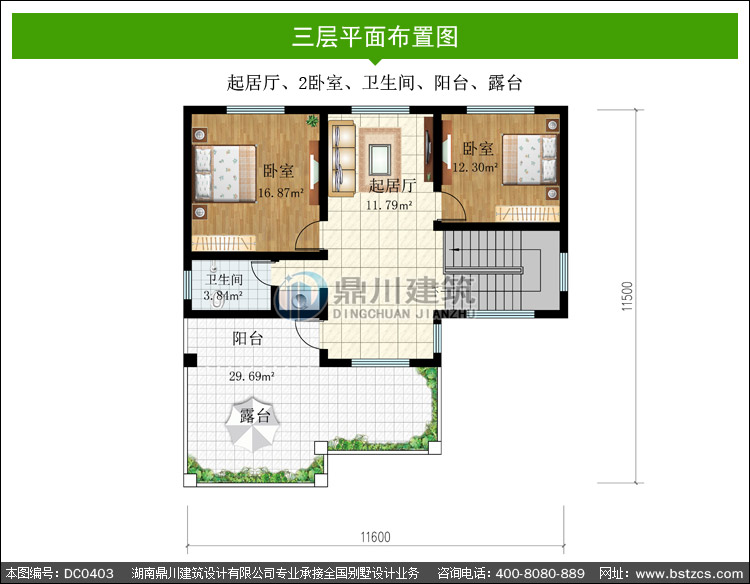 | 三 層: | 起居廳、2臥室、衛(wèi)生間、陽臺、露臺 | |||