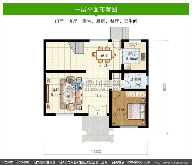 | 一 層: | 門廳、客廳、臥室、廚房、餐廳、衛生間 | |||