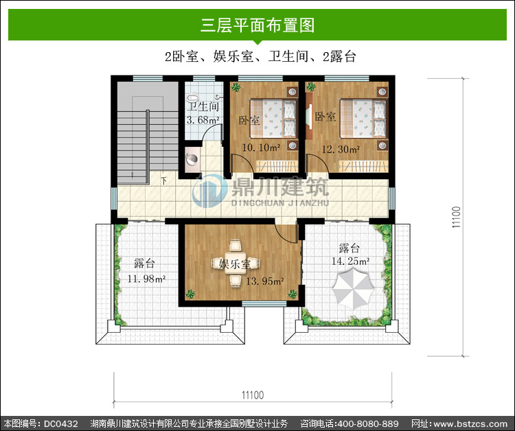 | 三 層: | 2臥室、娛樂室、衛生間、2露臺 | |||