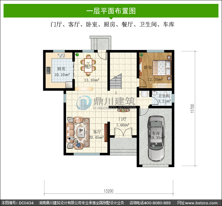 | 一 層: | 門廳、客廳、臥室、廚房、餐廳、衛生間、車庫 | |||