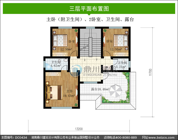 | 三 層: | 主臥(附衛生間)、2臥室、衛生間、露臺 | |||