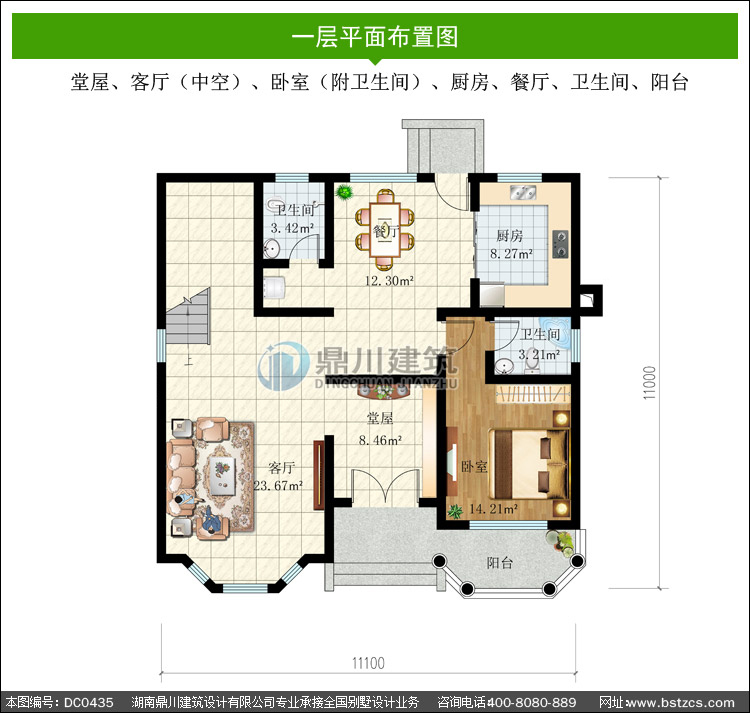| 一 層: | 堂屋、客廳(中空)、臥室(附衛生間)、廚房、餐廳、衛生間、陽臺 | |||
