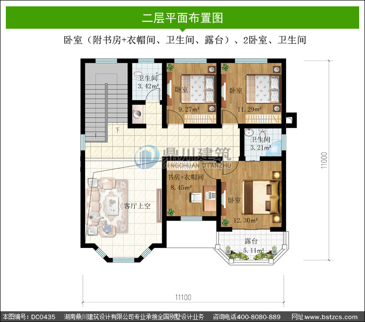 | 二 層: | 臥室(附書房+衣帽間、衛生間、露臺)、2臥室、衛生間 | |||