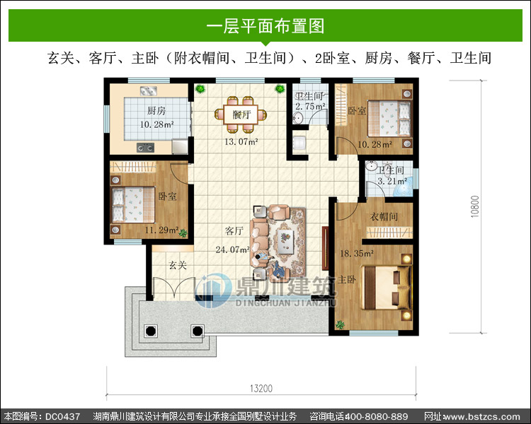 農村一層自建別墅設計圖紙及效果圖_農村平房別墅圖紙,鼎川建筑