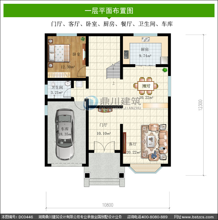 | 一 層: | 門廳、客廳、臥室、廚房、餐廳、衛生間、車庫 | |||
