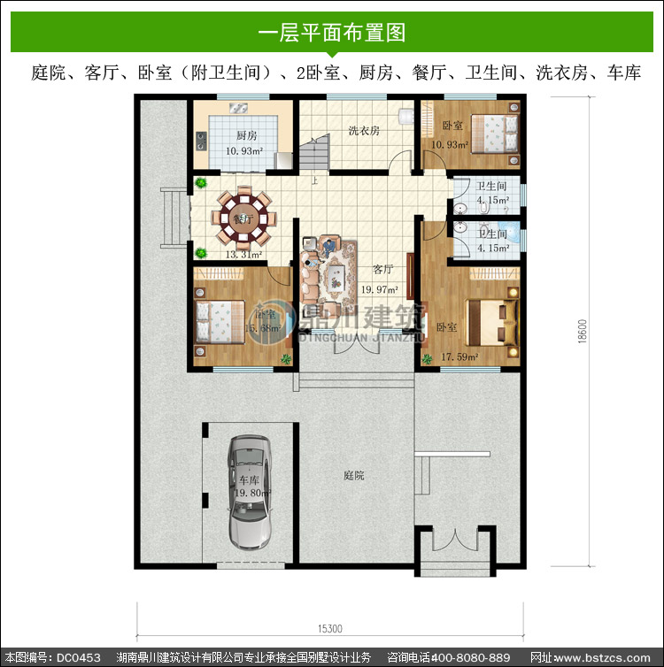 | 開(kāi)間: 15.3米 | 進(jìn)深: 18.6米 | 占地面積: 296.14平方米 | 建筑面積: 372.50平方米 |
