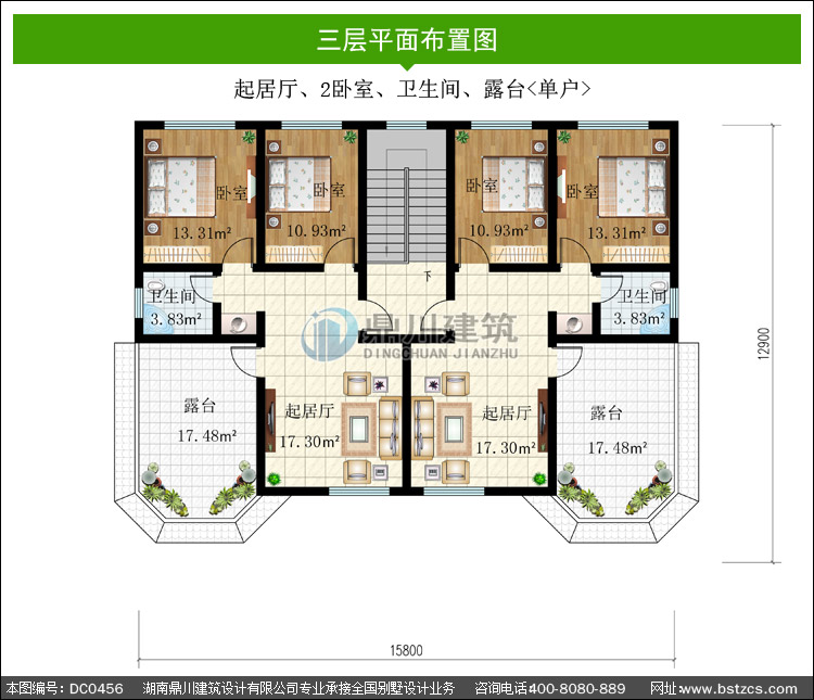 豪華三層復式雙拼別墅圖紙及效果圖_雙拼別墅設計圖紙,鼎川建筑