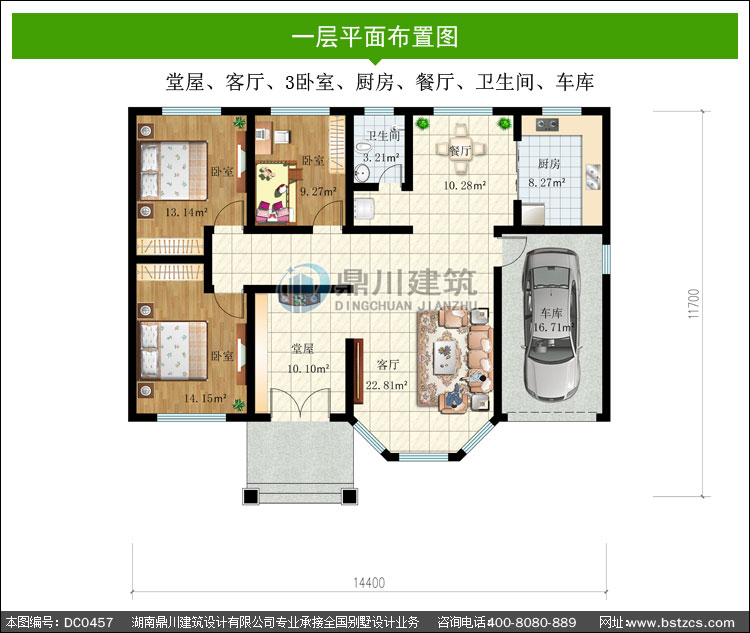 漂亮的一層帶車庫農村別墅設計圖紙_農村房屋設計圖,鼎川建筑