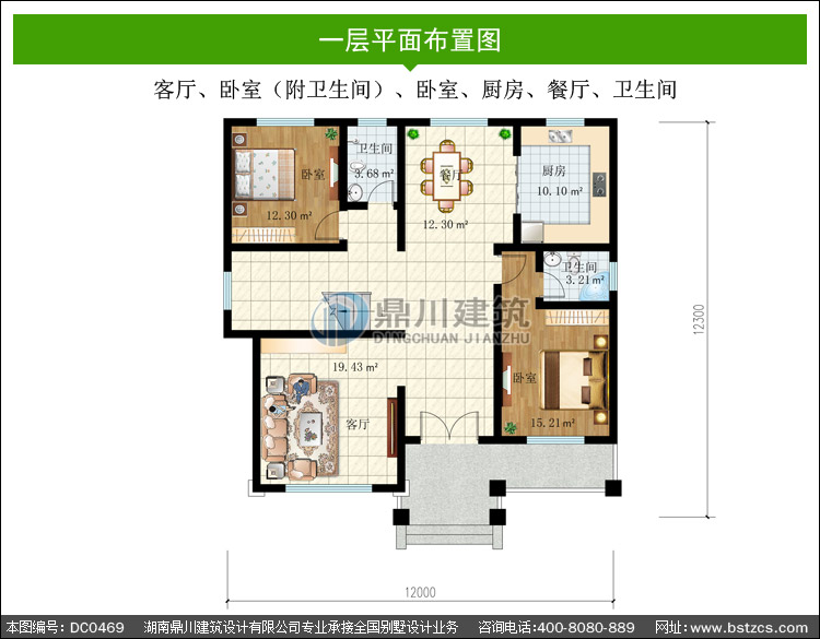 | 一 層: | 客廳、臥室(附衛生間)、臥室、廚房、餐廳、衛生間 | |||