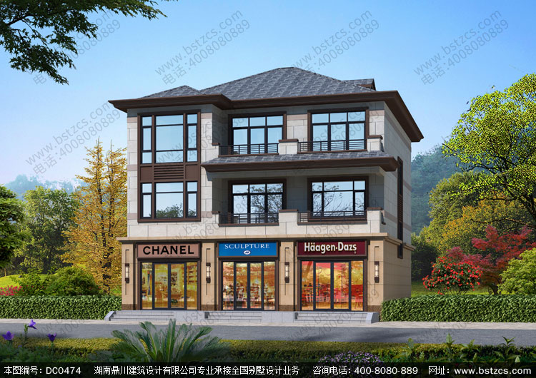 三層帶商鋪自建房小別墅設計圖紙_農村三層別墅設計,鼎川建筑