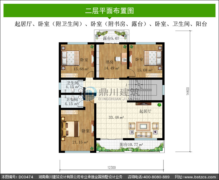 | 二 層: | 起居廳、臥室(附衛生間)、臥室(附書房、露臺)、臥室、衛生間、陽臺 | |||