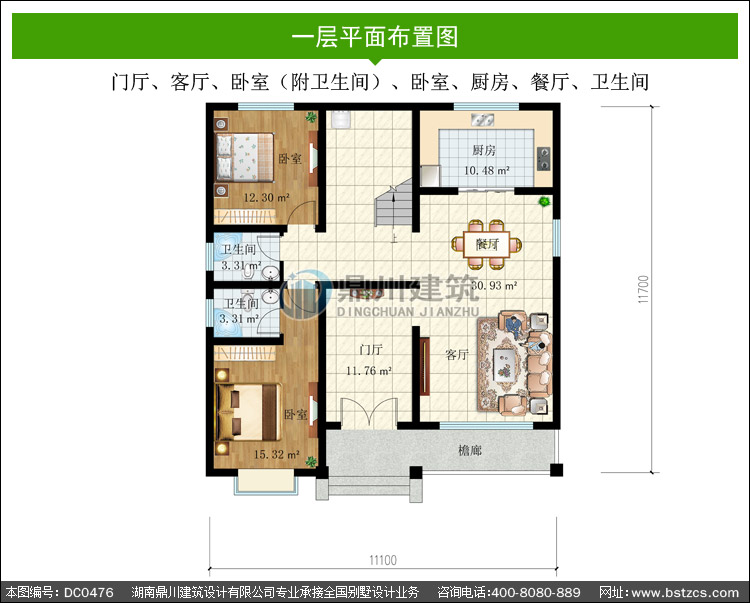 | 一 層: | 門廳、客廳、臥室(附衛生間)、臥室、廚房、餐廳、衛生間 | |||