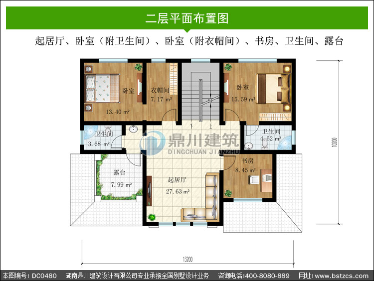| 二 層: | 起居廳、臥室(附衛(wèi)生間)、臥室(附衣帽間)、書房、衛(wèi)生間、露臺(tái) | |||