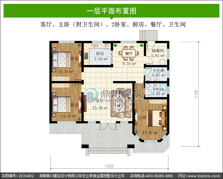 農村一層自建別墅設計圖紙及效果圖_農村平房別墅圖紙,鼎川建筑