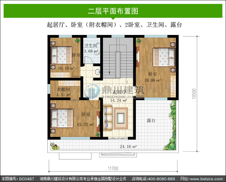 | 二 層: | 起居廳、臥室(附衣帽間)、2臥室、衛(wèi)生間、露臺(tái) | |||