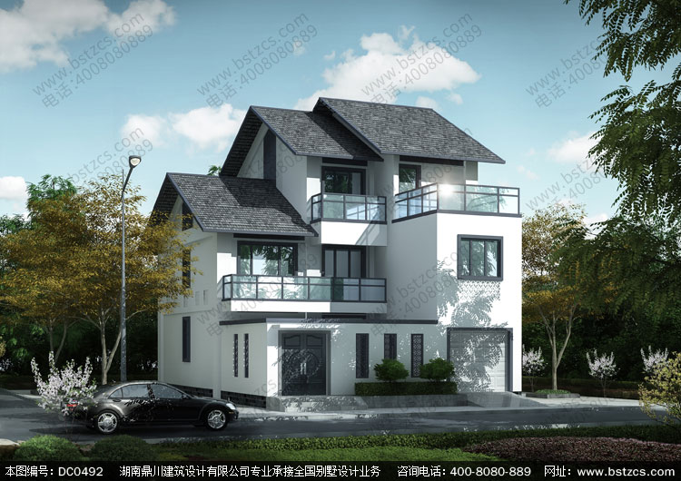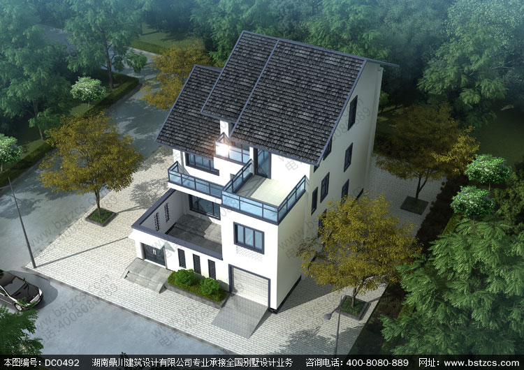 二層半帶車庫中式小別墅全套圖紙及效果圖_三層中式房屋設(shè)計,鼎