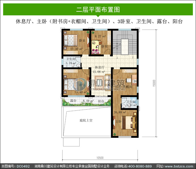 | 二 層: | 休息廳、主臥(附書房+衣帽間、衛(wèi)生間)、3臥室、衛(wèi)生間、露臺、陽臺 | |||