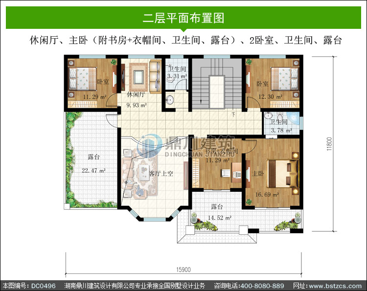 | 二 層: | 休閑廳、主臥(附書(shū)房+衣帽間、衛(wèi)生間、露臺(tái))、2臥室、衛(wèi)生間、露臺(tái) | |||