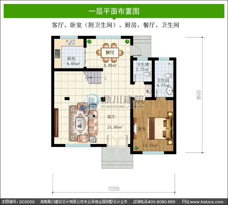 | 一 層: | 客廳、臥室(附衛生間)、廚房、餐廳、衛生間 | |||