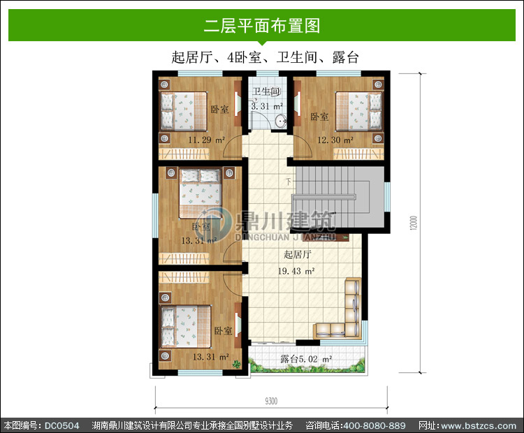 | 二 層: | 起居廳、4臥室、衛(wèi)生間、露臺 | |||