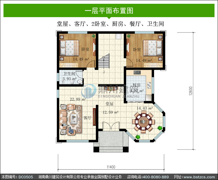 | 一 層: | 堂屋、客廳、2臥室、廚房、餐廳、衛生間 | |||