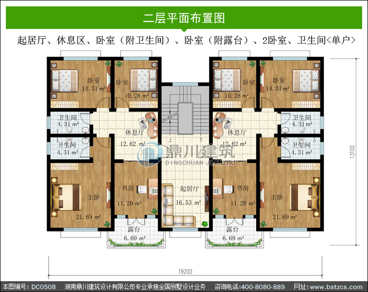 漂亮的二層共堂屋雙拼別墅設計圖紙_農村雙拼自建房設計圖,鼎川別墅設計