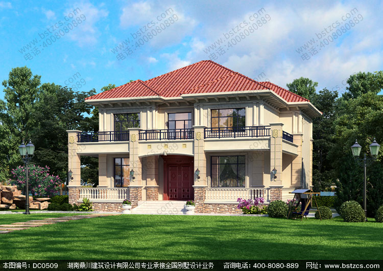 新歐式二層帶露臺別墅設(shè)計效果圖及施工圖_農(nóng)村兩層別墅設(shè)計圖紙,鼎川建筑