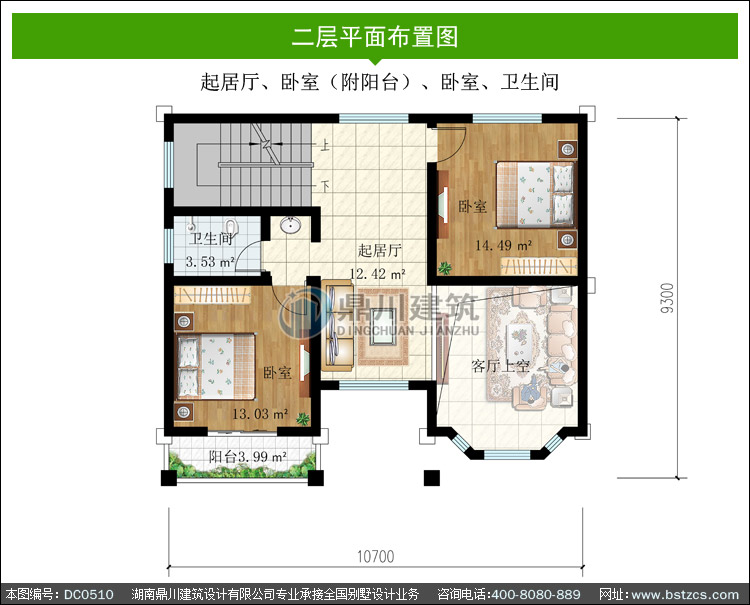 | 二 層: | 起居廳、臥室(附陽臺)、臥室、衛生間 | |||
