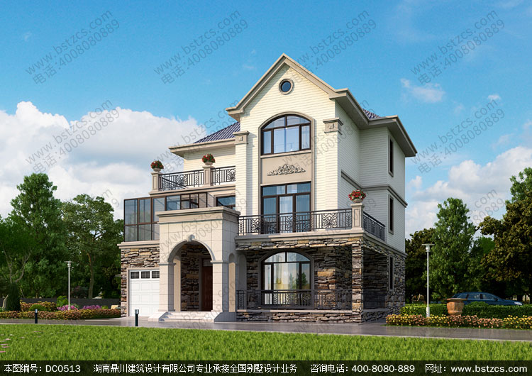 歐式三層旋轉樓梯別墅效果圖及效果圖_三層別墅設計圖紙,鼎川建