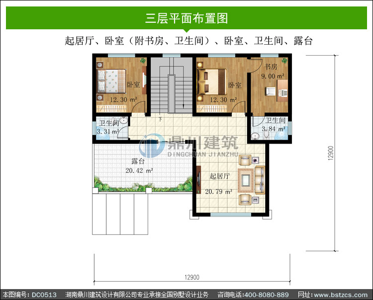 三層帶露臺中式實用型別墅設計圖紙_農村三層別墅圖紙,鼎川建筑