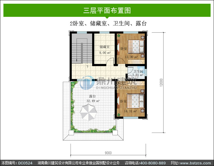 | 開間: 9米 | 進深: 12米 | 占地面積: 111.01平方米 | 建筑面積: 288.44平方米 |